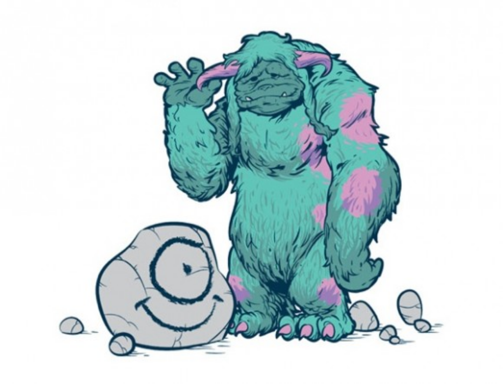 Mike Wazowski is reimagined here as a rock with a face, much like the dangerous rocks seen toward the end of the movie.