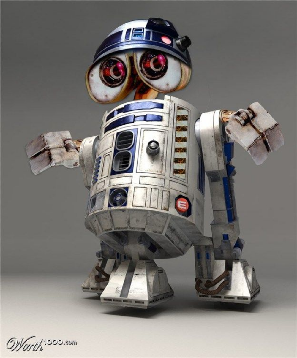 Everyone's two favorite droids come together in this imaginative mash-up. The sassy R2-D2 of Star Wars fame is perfectly blended with the kindhearted Wall-E.
