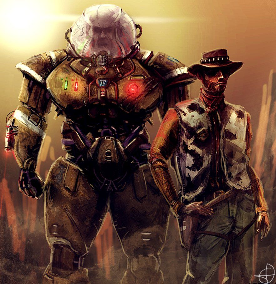 The bright sun and red sky behind the pair are perfect for a Mars landscape or a Wild West desert.