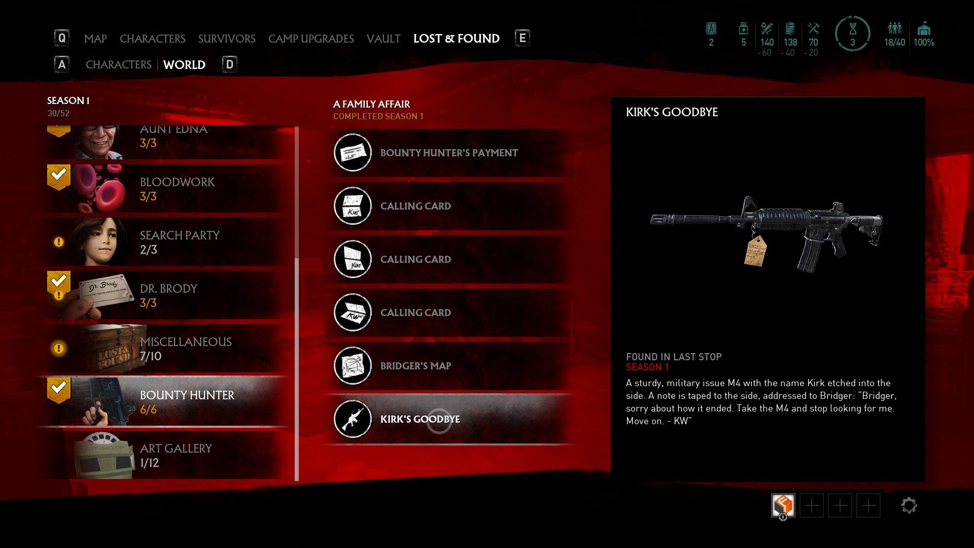Be sure to read Kirk Warren's goodbye letter since it offers some interesting setup for the future. He's not necessarily dead and could show up in future seasons of OVERKILL's The Walking Dead. The weapon he leaves behind, the M4, is the gun Bridger starts with so it all ties together nicely.